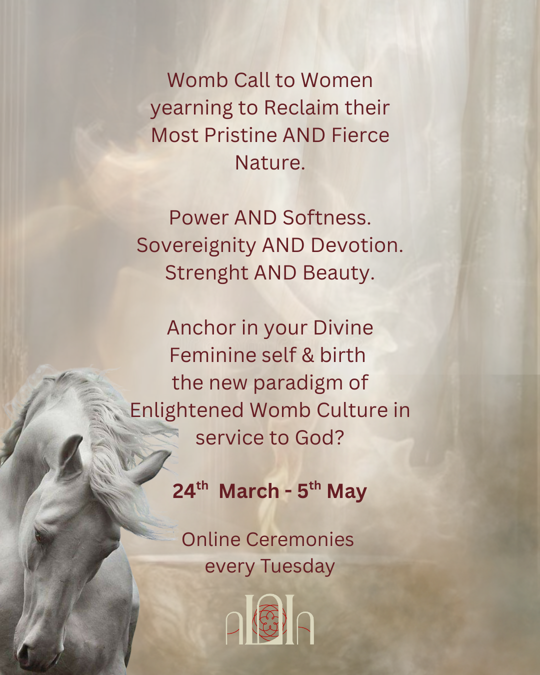 Each weekly live ceremony is a portal where You estabilish and strenghten your own sovereign connection with the Womb (own and the Cosmic one) and you let in more and more of your natural Divinity.