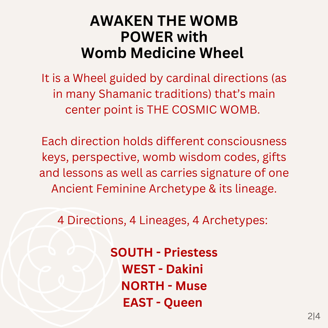 Womb Power Awakening is a true Mystery School Journey: shamanic tantric dive into highly activating Divine Feminine archetypes & Rose Chambers of the Womb Medicine Wheel.