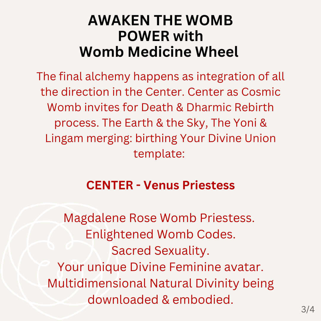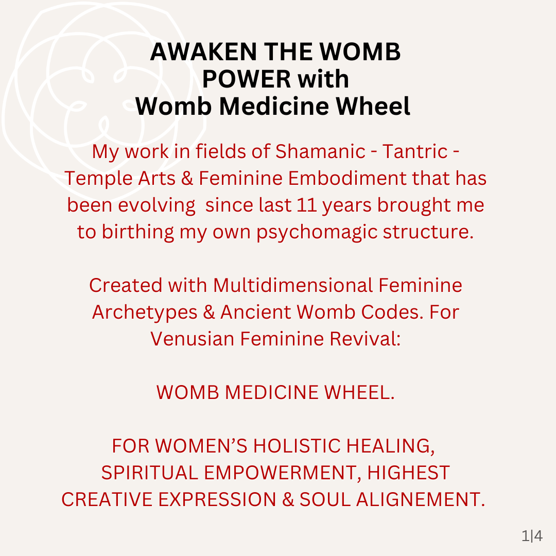 Reclaiming Your Womb Power through Divine Feminine Arts and Christ & Buddha Consciousness. 💎 6-week Online Sisterhood Journey with weekly Ceremonial Calls (every Tue), Telegram Temple Space, Platform with extra Transmissions & weekly Mentorship. Transformation through Womb Medicine Wheel: Shamanic~Tantric Feminine Technology designed to offer a sacred space for your Quantum Rebirth. For Women ready for dharmic identity shift & birthing their Divine Feminine Leadership timeline🔥